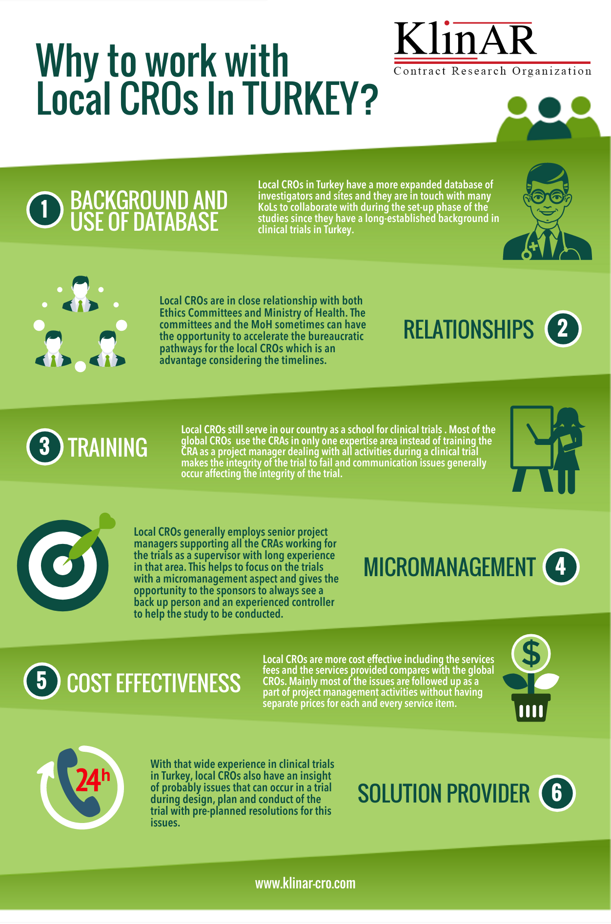 Different types of trials such as; Clinical Trials, Post Marketing Trials, Site Management Organization, Electronic Data Capture, ATMP studies, Medical Device Studies and Compassionate Use are being conducted by Klinar CRO.